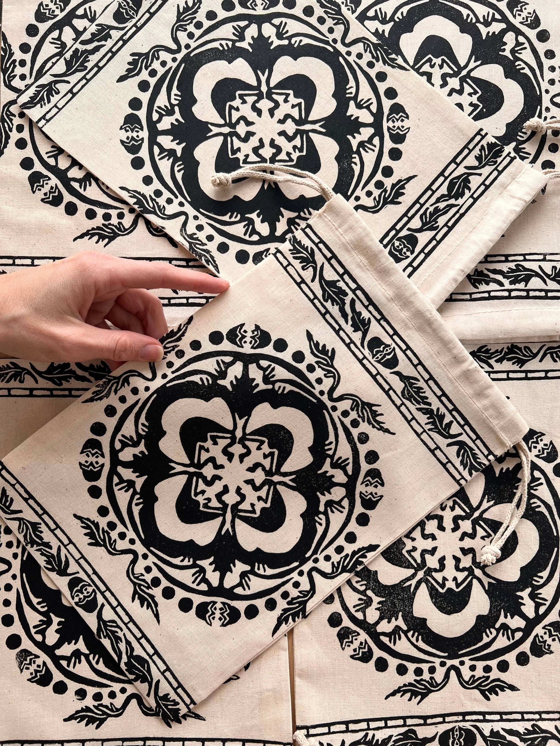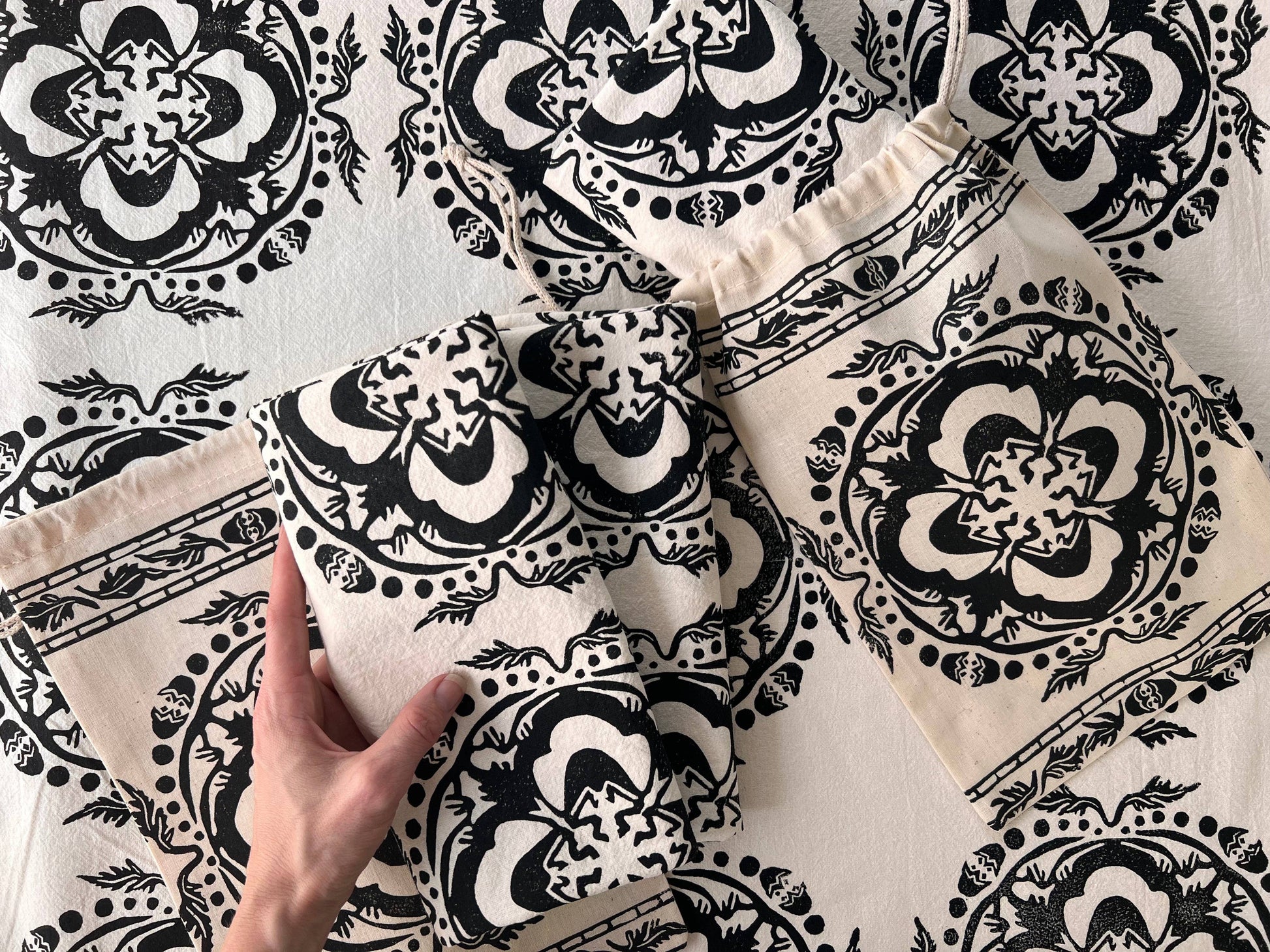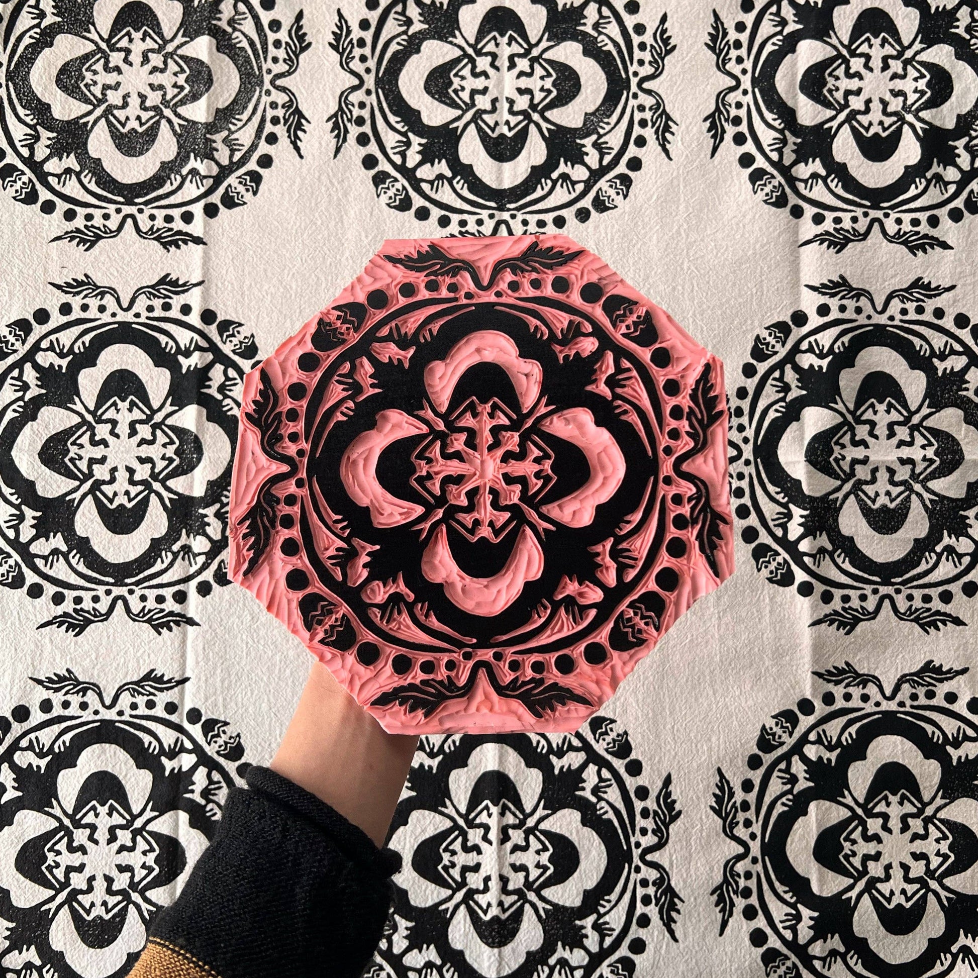 Honoring the traditional art of hand block printing, textile art for everyday life. Each tile is individually inked and hand pressed.