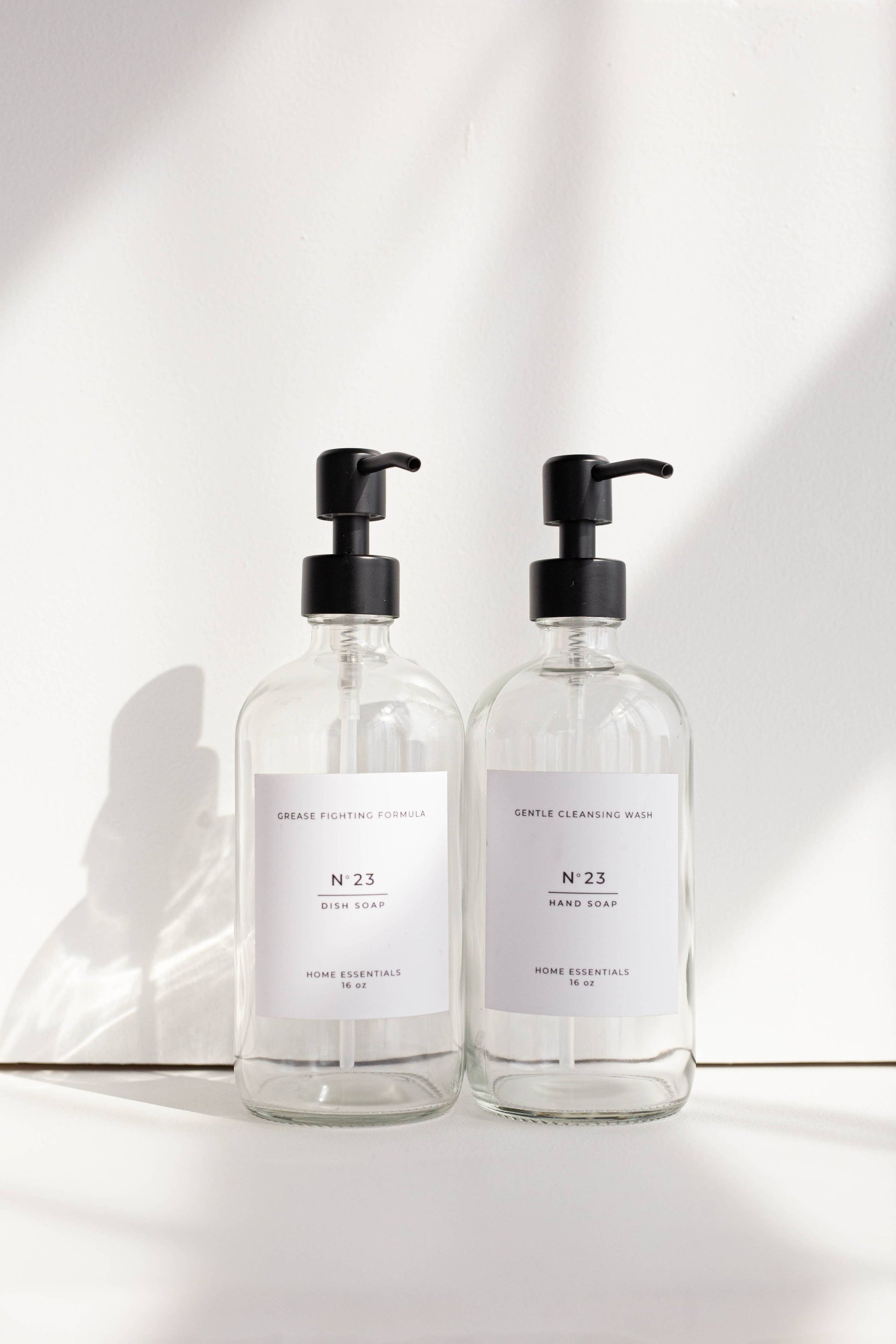 Glass Clear Liquid Pumps with Label (Dish Soap)