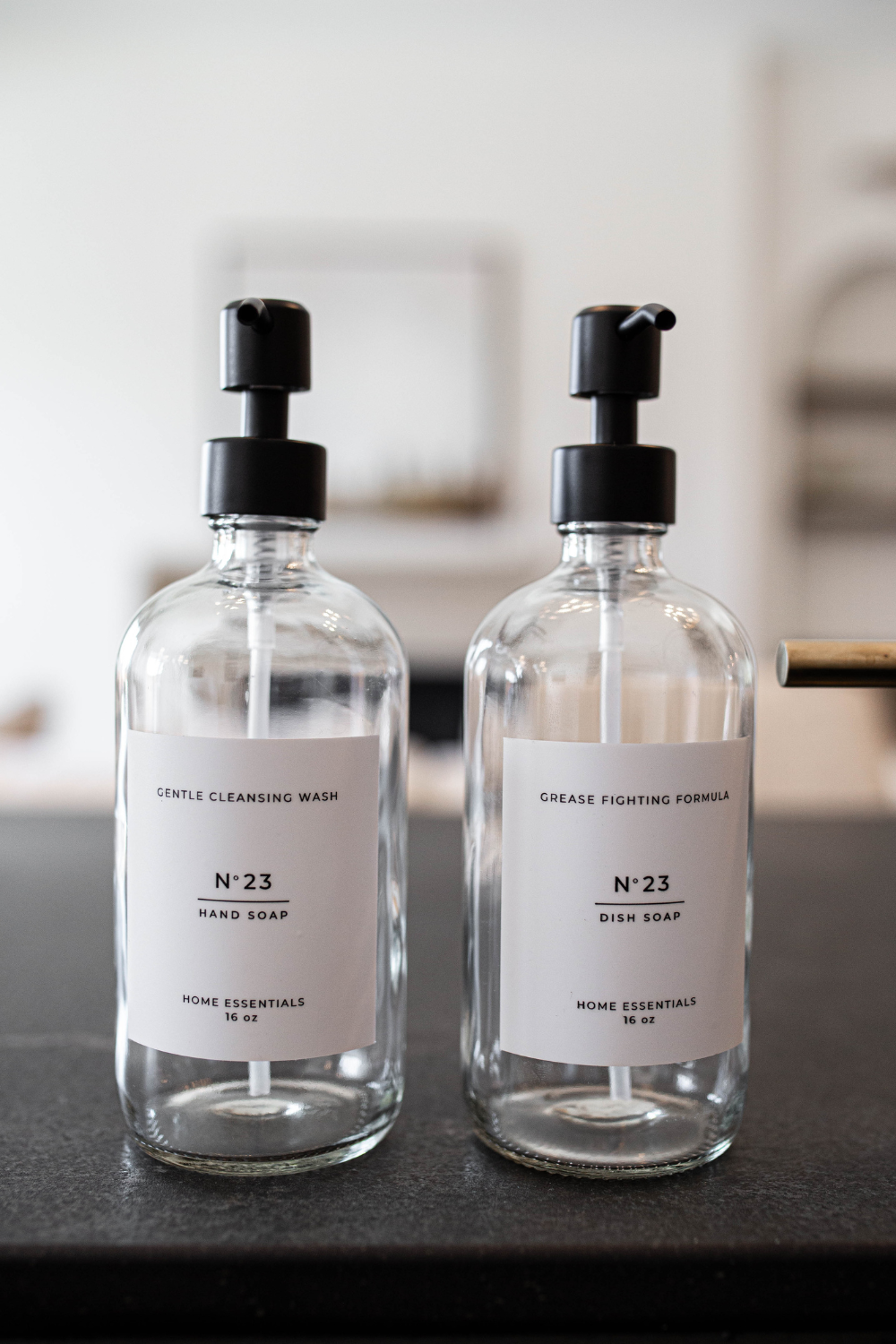 Clear Soap Bottle Dispenser with Label- Dish or Hand Soap