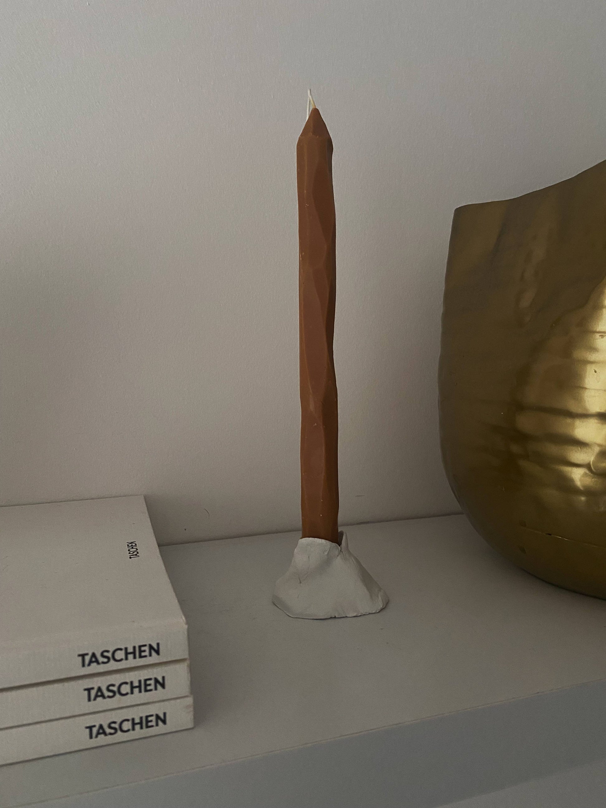 Hand carved Toffee tapered candle sticks. Vegan, soy wax