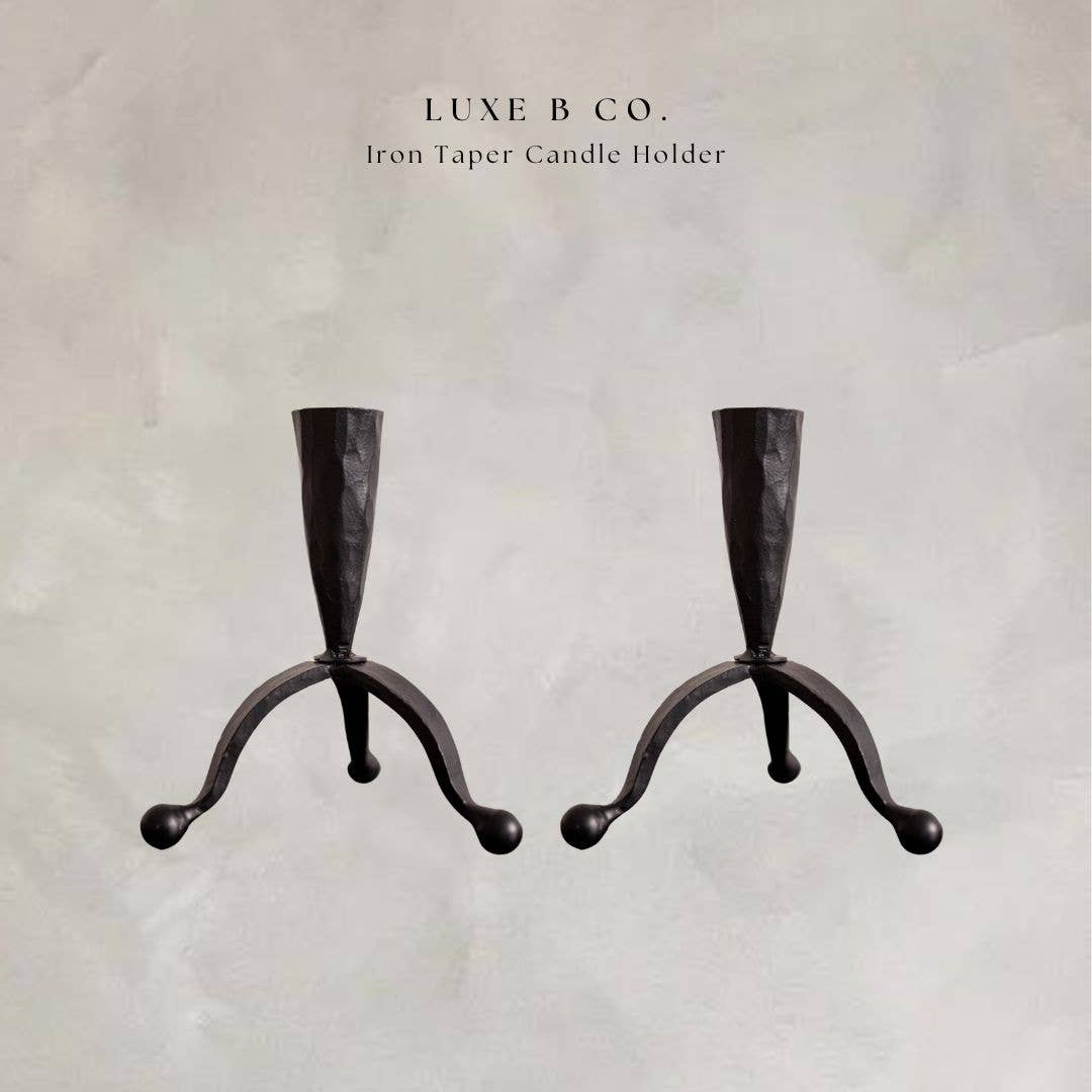 Forged Iron Taper Candle Holder. Beautiful styled in a set of two