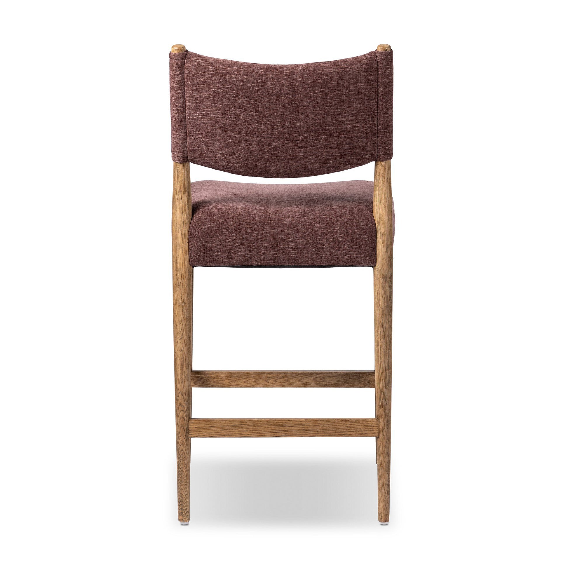 A fresh take on midcentury styling, perfectly sized for the counter. Supportive back and seat cushions are upholstered in a soft, neutral fabric and framed out by toasted solid oak.