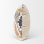 The Kenzie Pillow is a square, handwoven wool decorative pillow cover that features a multi-coloured Ikat pattern of multi-coloured hues.