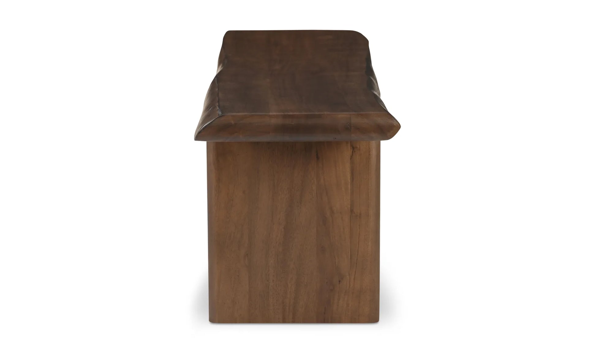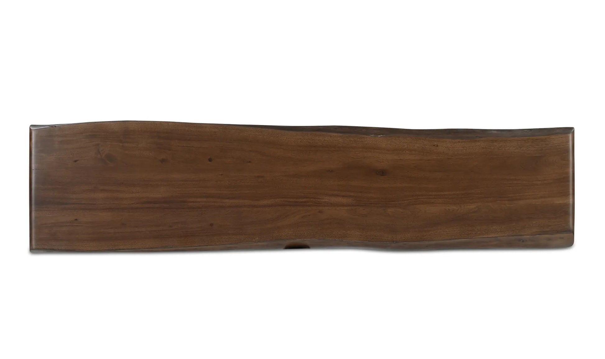 The Lila dining bench reimagines its live edge. It introduces a softer appeal with bullnose edging on the shorter ends and base, offering a delicate sophistication. This piece is an invitation to the beauty of live edge with an elegant, feminine touch. Comfortably seats two.