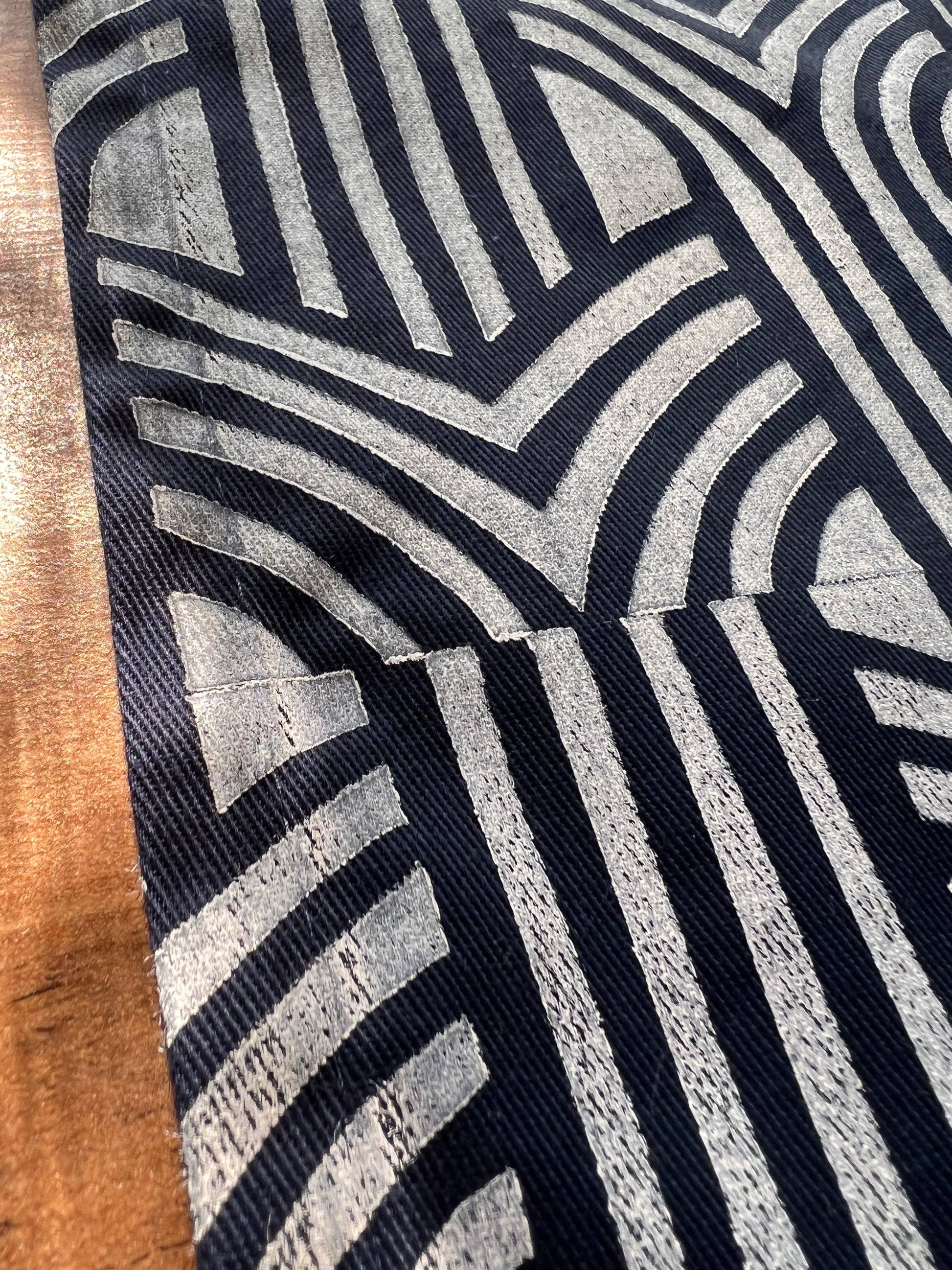 The printer’s block was carved by hand and each tile is inked and printed individually, creating a seamless pattern.