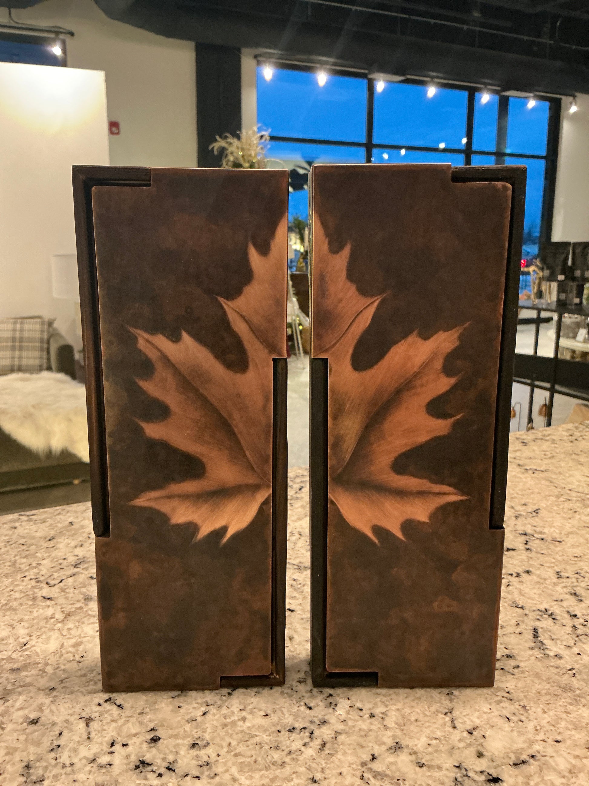 Patina brass maple leaf art