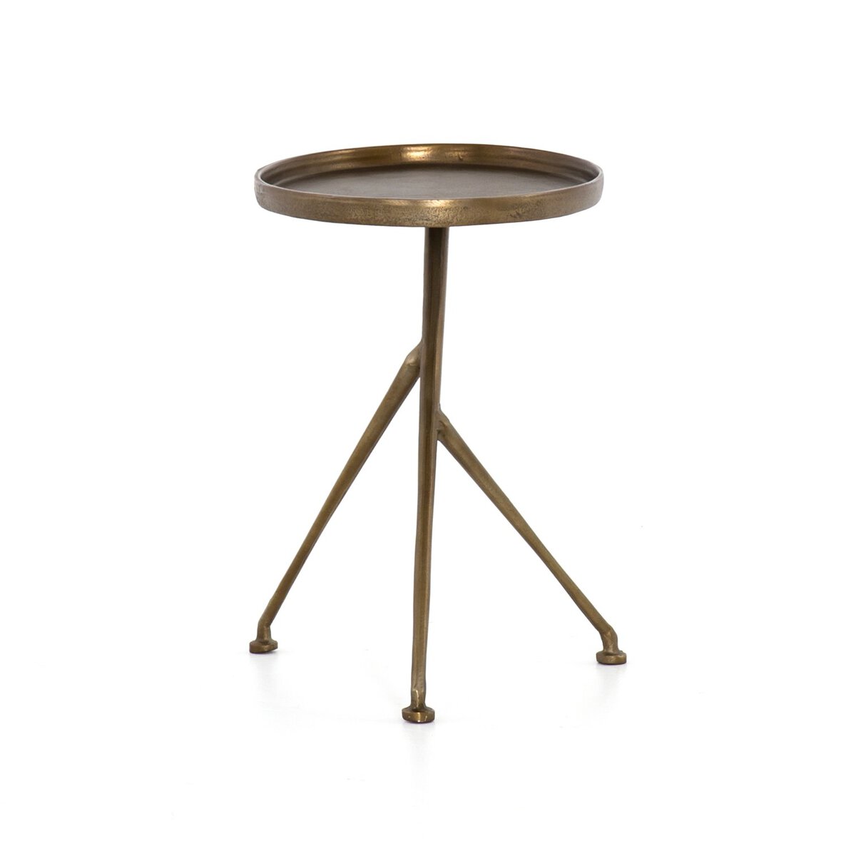 The tripod table with a cleverly balanced twist. Angular cast aluminum is finished in antique rust to bring out highs and lows. Great indoors or out— cover or store indoors during inclement weather and when not in use.