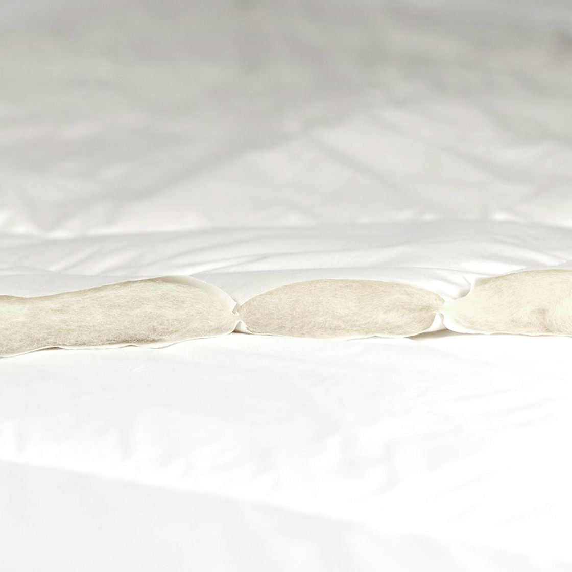 The Piatra duvet is filled with the finest 100% pure Merino wool from Europe and covered with a 100% German cotton ticking to give you a restful night’s sleep. It has an incredibly soft and lightweight feel that drapes perfectly over your body.Wool regulates your body temperature and helps to keep you in the ‘thermal comfort zone’ longer. The moisture control properties of wool help to wick away moisture and ensure a dry, restful sleep environment, and reduces the likelihood of common allergens, like dust mites. Piatra’s Merino wool is a soft, silky fiber with less than 1% lanolin, resulting in a healthy and hypoallergenic product