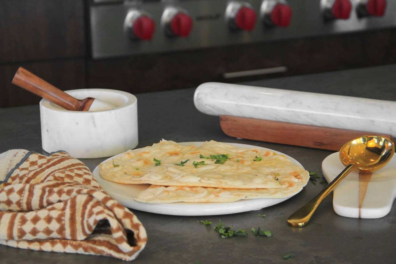 Elevate your kitchen aesthetics and cooking skills with our White Marble Mortar & Pestle. Perfect for grinding spices to perfection, This set is made of stunning white marble with an acacia wood handle, adding a touch of sophistication to any kitchen.